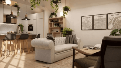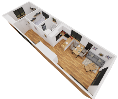 Z powierzchnią użytkową 56 m², Tokyo zapewnia warunki, które nie ustępują tradycyjnym domom jednorodzinnym. Układ wnętrza przewiduje aż trzy sypialnie, przestronny salon połączony z jadalnią i kuchnią, a także dużą łazienkę. Dzięki panoramicznym oknom wnętrze jest pełne naturalnego światła, co dodatkowo potęguje poczucie przestrzeni.