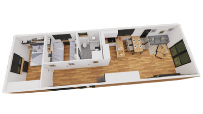 Poznaj Tokyo – największy i najbardziej przestronny domek mobilny w naszej ofercie. To nowoczesny projekt, który łączy imponującą przestrzeń, elegancki wygląd i doskonałą funkcjonalność, tworząc prawdziwie komfortowy dom całoroczny.
