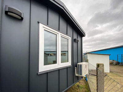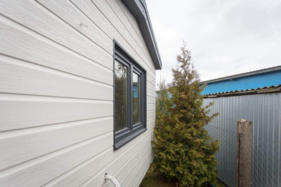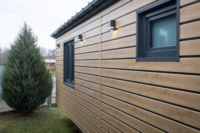 - Wykończenie elewacji panelami PCV lub deską imitującą drewno.